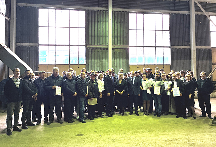 Работников транспортного цеха поздравили заместитель генерального директора по правовым вопросам, организационному развитию и закупочной деятельности Адель Шагимарданов и председатель профсоюзного комитета Гульнара Куреева.
