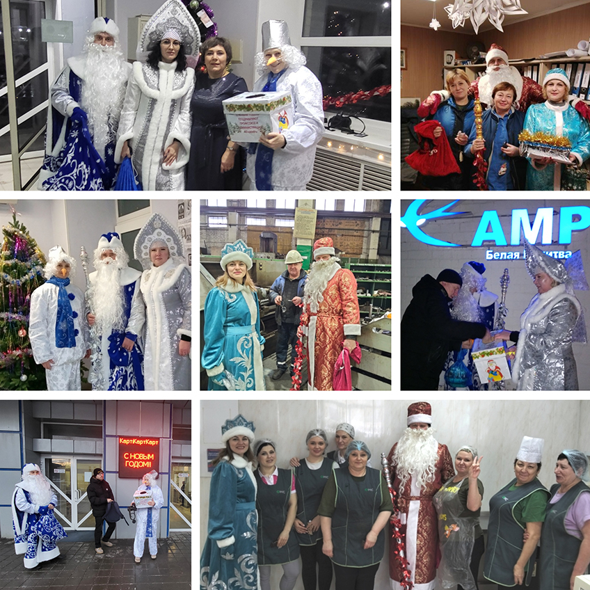 С обеда 29 декабря и весь день 30 декабря праздничные поздравления продолжились в каждом цехе и подразделении. Цеховые профсоюзные комитеты позаботились о том, чтобы на каждом рабочем месте случился настоящий новогодний праздник. От главных профсоюзных героев Нового года на проходных – Деда Мороза, Снегурочки и Снеговика – эстафету подхватили цеховые Дедушки Морозы с внучками Снегурочками. Они скрасили будничную атмосферу своими сказочными мини-представлениями, поздравлениями и подарочками прямо на рабочих местах.