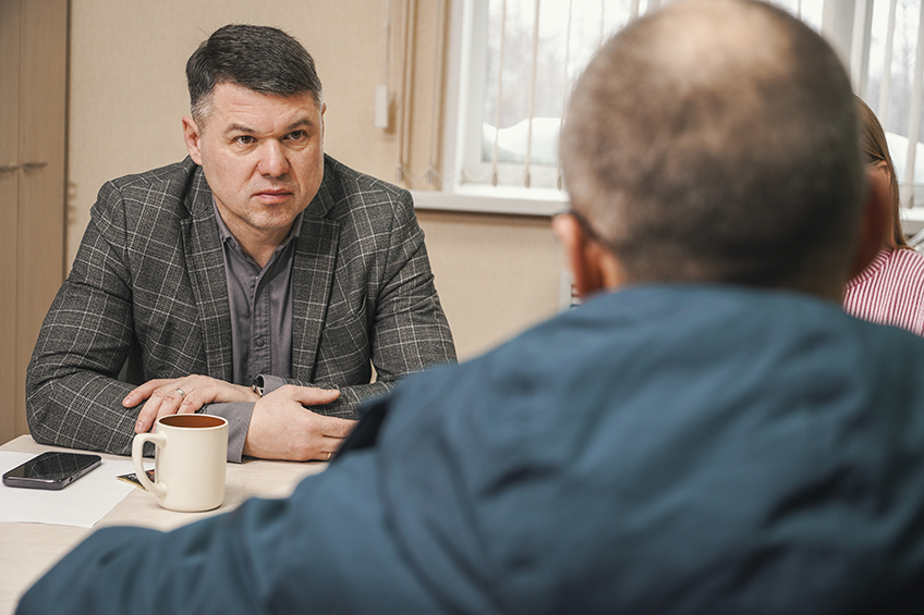 На Арзамасском приборостроительном заводе им. Пландина работник цеха №37, участник СВО, встретился с председателем профсоюзной организации Александром Тюриным и своими коллегами.