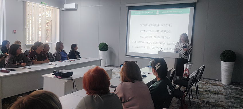 В этом году встреча состоялась на базе санатория «Васильевский», был приглашен спикер – кандидат экономических наук, психолог, преподаватель КГМУ Р.А. Джумаева. Тема семинара: «Организационная культура профсоюзной организации как основа профилактики профессионального выгорания работника и повышения его стрессоустойчивости».