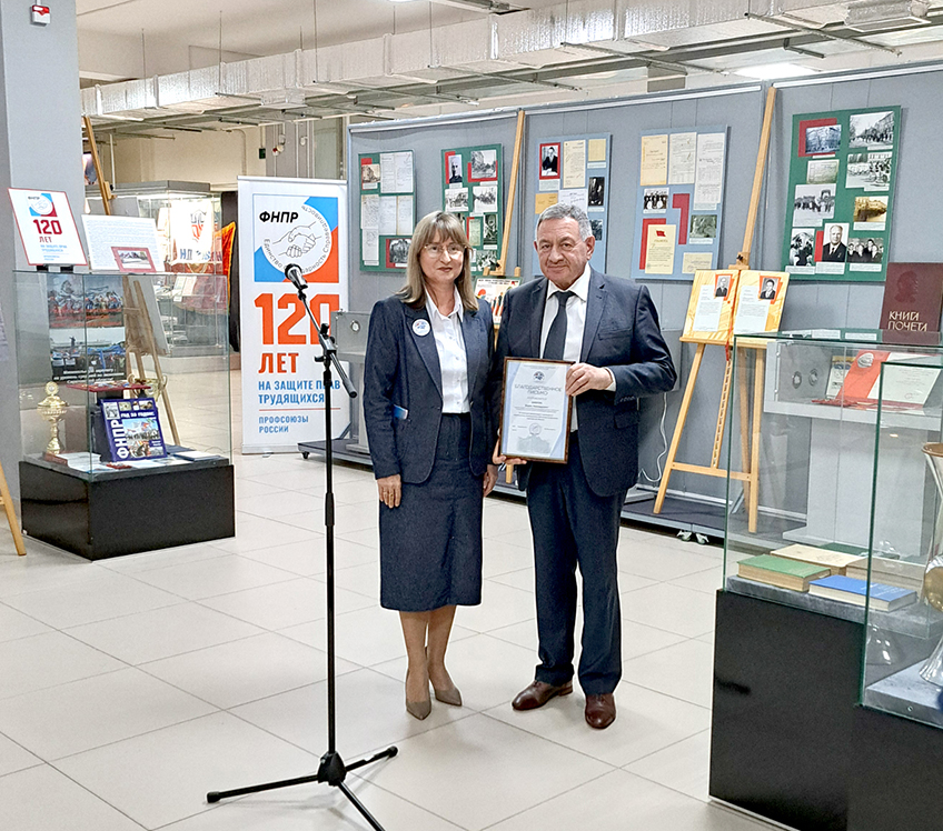 Нужно отметить, что ППО АО «СЭПО» Профавиа также предоставила музею эксклюзивные экспонаты. Это Почетная грамота коллективу и первичной организации завода от обкома профсоюза, выписка из решения областного Совета от 1969 года о присуждении нашему предприятию первого места за лучшую разработку и внедрение планов по научной организации труда, а также фотоальбом по научной организации труда и управления, где наглядно показана профсоюзная работа, которая проводилась на заводе в советское время.