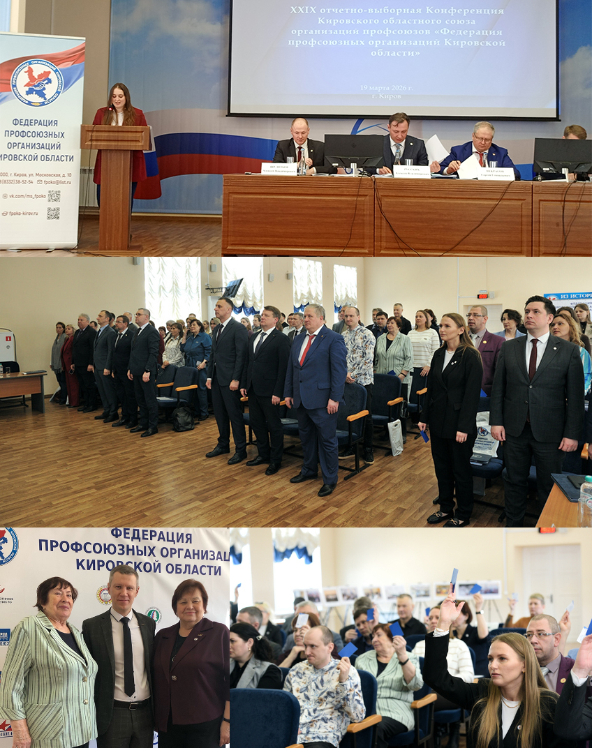В начале конференции состоялась торжественная церемония награждения профсоюзных активистов почетными наградами. Затем делегаты заслушали отчеты о работе совета Федерации и контрольно-ревизионной комиссии за период с 2021 по 2026 год, признав работу профобъединения удовлетворительной. В ходе конференции был принят отчет о деятельности и определены основные направления работы до 2031 года в свете решений XII съезда ФНПР, а также внесены изменения в Устав ФПОКО. Одним из ключевых вопросов конференции стали выборы председателя ФПОКО. В результате открытого голосования Федерацию профсоюзных организаций Кировской области вновь возглавил Алексей Русских, получивший единогласную поддержку всех делегатов.