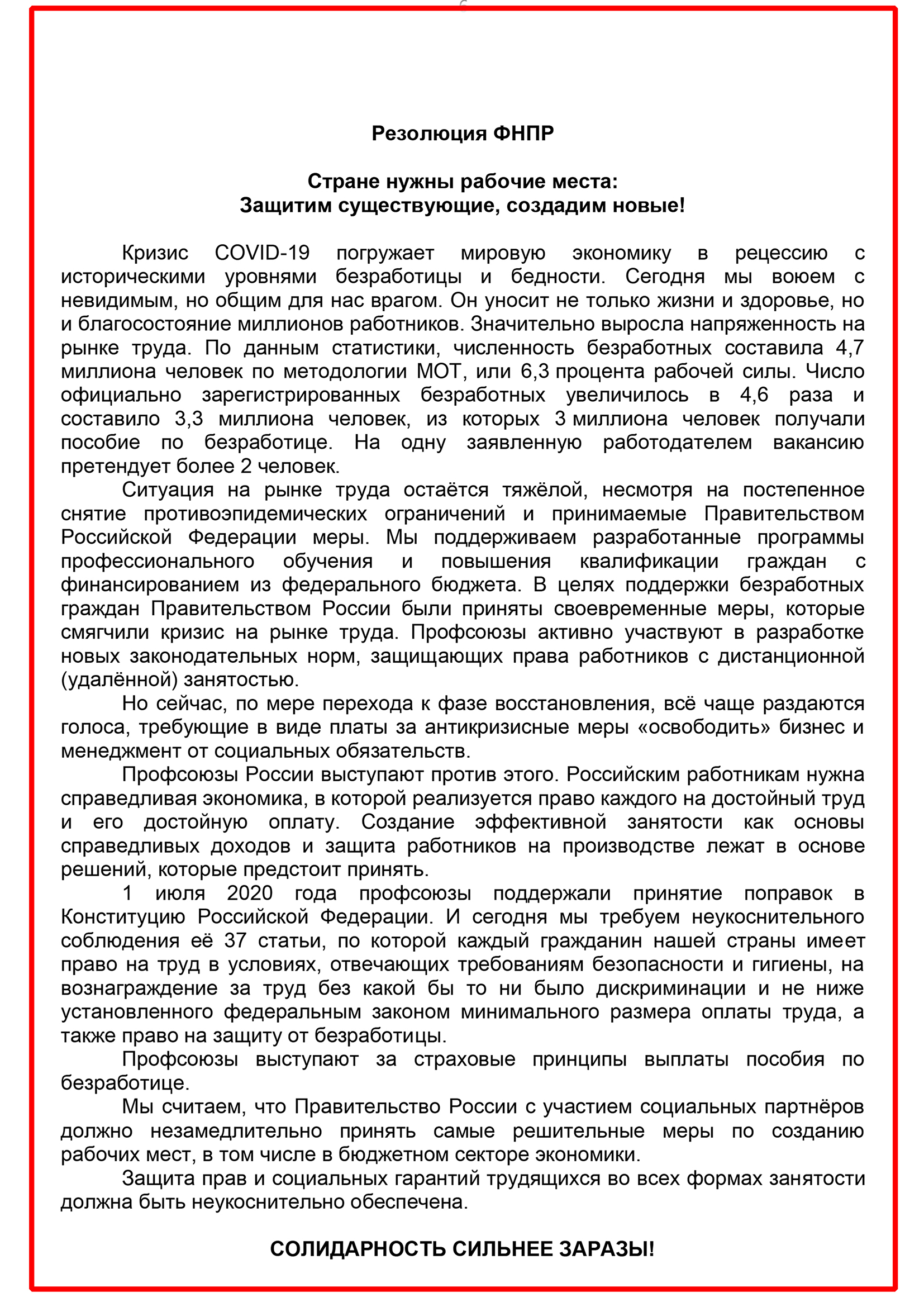 - обсуждение Резолюции ФНПР на заседаниях трёхсторонних комиссий по регулированию социально-трудовых отношений;